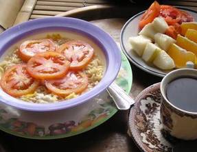 ちなみに別のロスメンで、朝食のときにミーを頼んだらトマトが上に乗ってきたんですが…こっちのがへんだよ